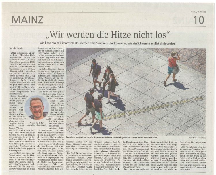 Gerne bieten wir weiterhin unsere Fachexpertise an, um unser Mainz fit zu machen für die Zukunft: Ökologisch, grün, attraktiv, gesund und weltoffen.