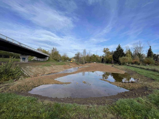 Die Bepflanzungsmaßnahmen einschließlich Nassansaat stehen noch aus.